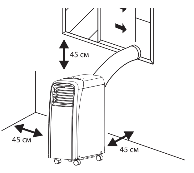 • Установите воздуховод для выброса теплого воздуха в окне или в специальном отверстии.