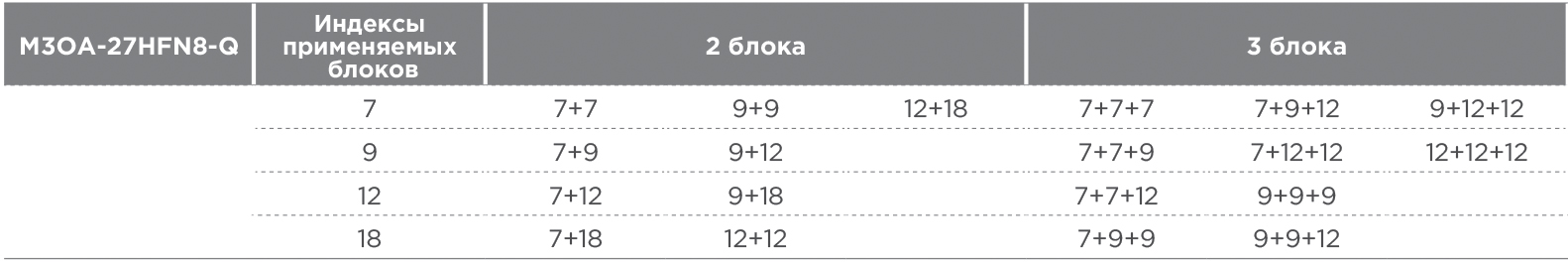 Блок рассчитан на 3 помещения, общей площадью до 75 кв.м. Комбинации внутренних блоков подбираются индивидуально, подходящие внутренние блоки Midea можно выбрать здесь.