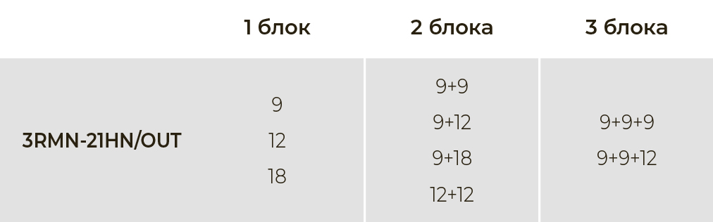 Рассчитан на подключение 3 внутренних блоков. Внутренние блоки для данной модели можно подобрать здесь. Внутренние блоки могут быть настенного, канального, кассетного и напольно-потолочного типа. Мульти-сплит-система работает на экологичном хладагенте нового поколения R32.
