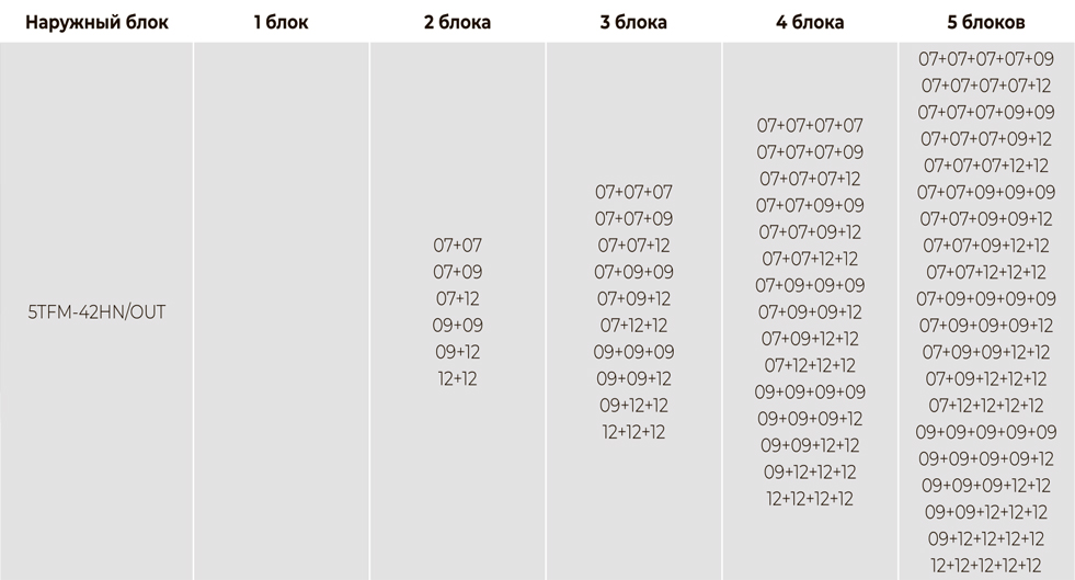 Данная модель наружного блока рассчитана на подключение 5 внутренних блоков и имеет общую площадь охлаждения до 120 кв.м.