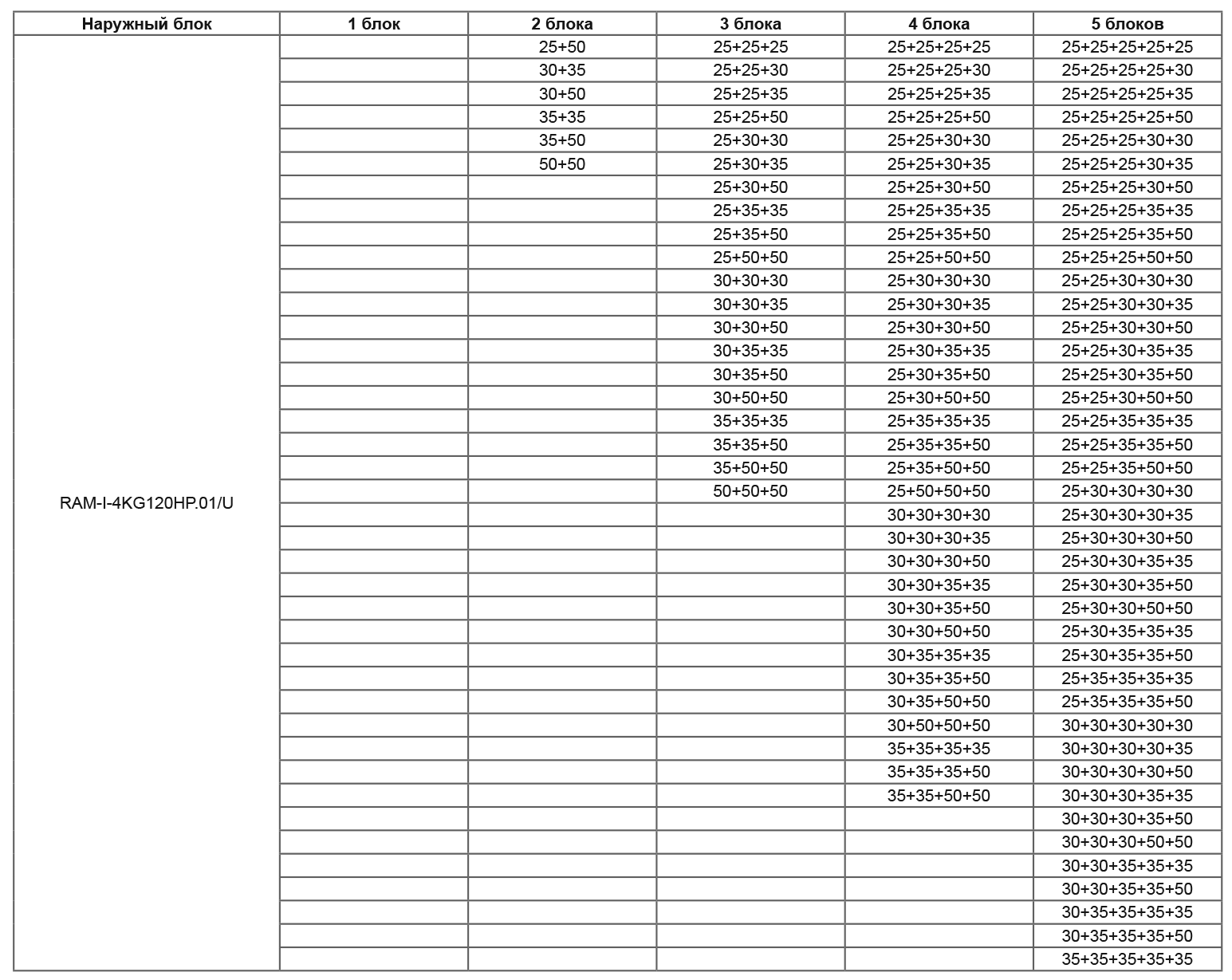 Данная модель наружного блока рассчитана на подключение 5 внутренних блоков и имеет общую площадь охлаждения до 120 кв.м.