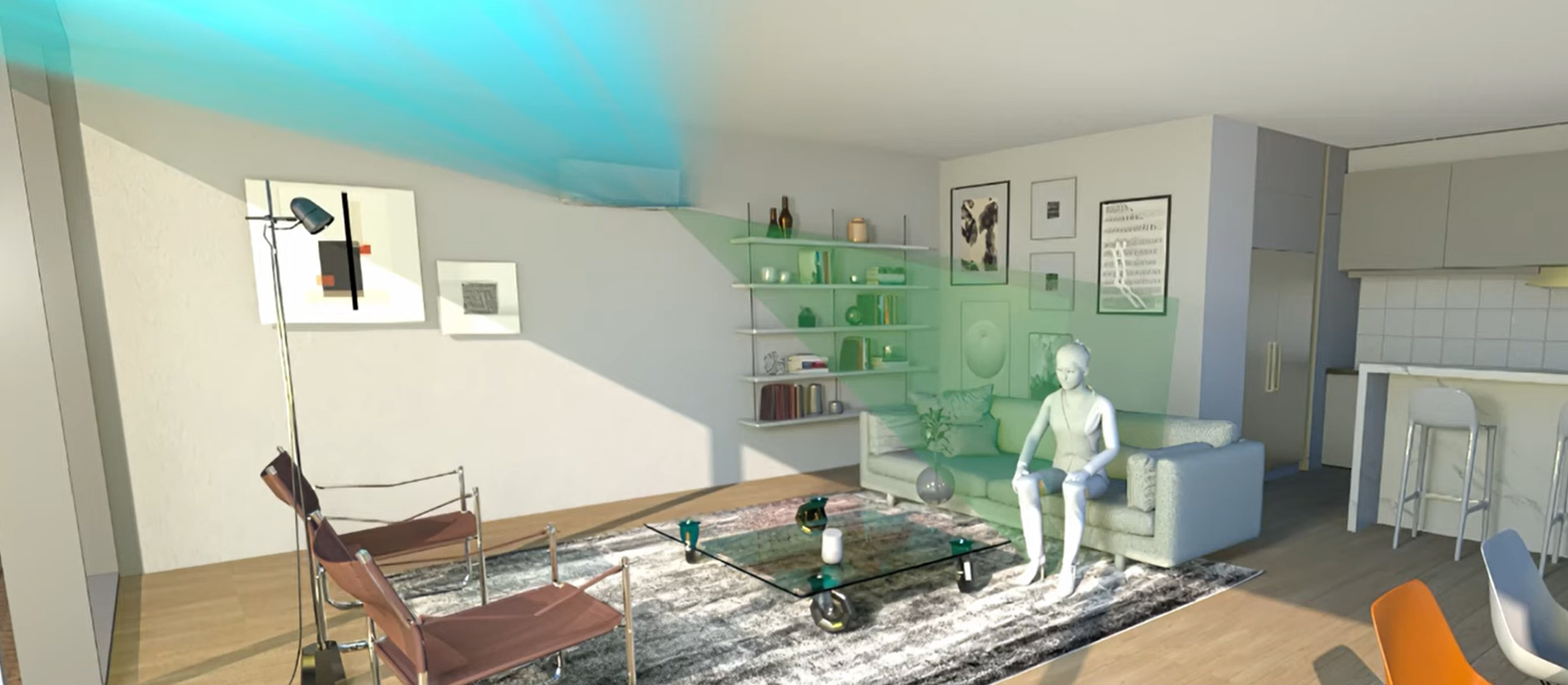 • 3D-воздушный поток, благодаря согласованной работе горизонтальных и вертикальных жалюзи, создает равномерную циркуляцию воздуха в помещении, исключая малейшие сквозняки и заполняя все пространство.