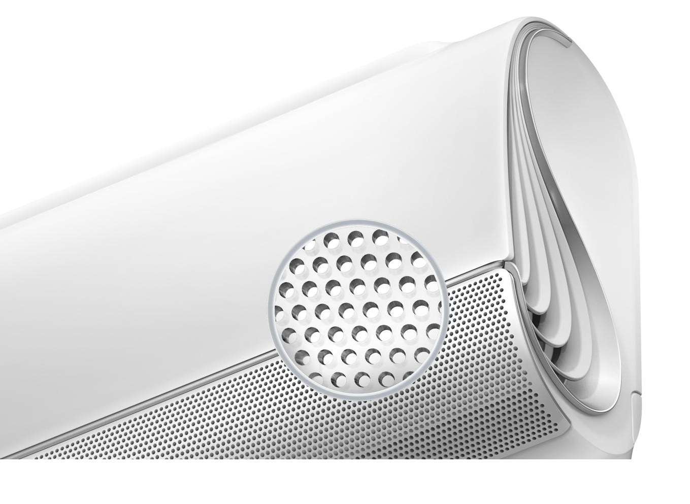 Запатентованная технология TwinFlapТМ: двойные жалюзи с широким углом раскрытия, высокое переднее воздуховыпускающее отверстие и максимальная скорость вентилятора — обеспечивают сверхбыстрое охлаждение воздуха в помещении.
