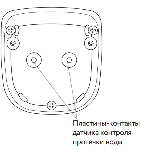 • Установите радиодатчик в месте возможного скопления воды на полу контактными пластинами вниз. При необходимости используйте крепление, входящее в комплект поставки радиодатчика.