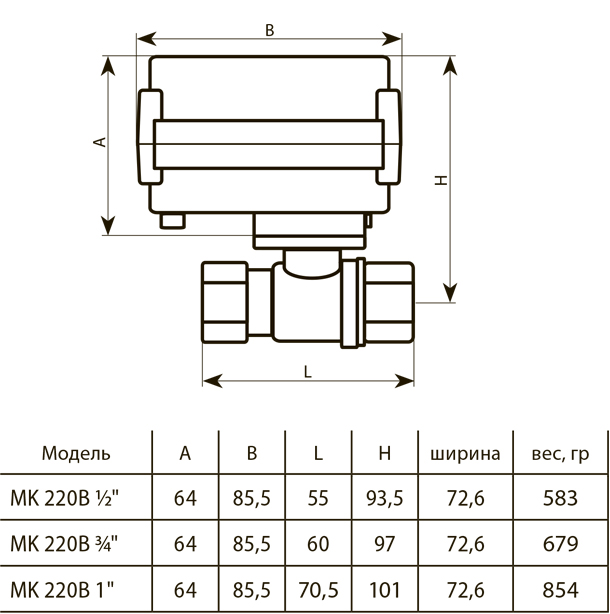 Шаровой кран с электроприводом MK 220В 1/2