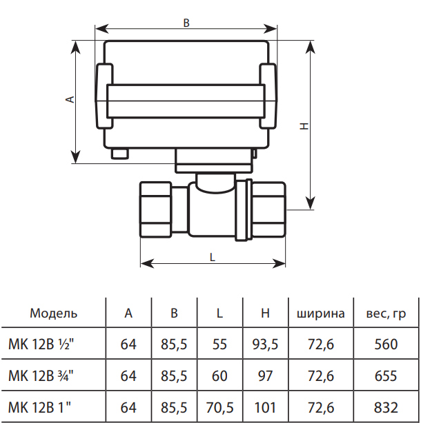 Шаровой кран с электроприводом серии MK / 12В / 1/2"
