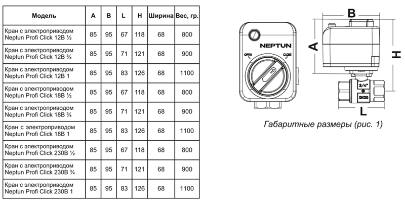 Шаровой кран с электроприводом Neptun Profi Click 230В 1/2"