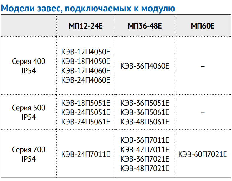 Модуль МП-Е является неотъемлемым элементом комплекта поставки завес и приобретается к каждой завесе.