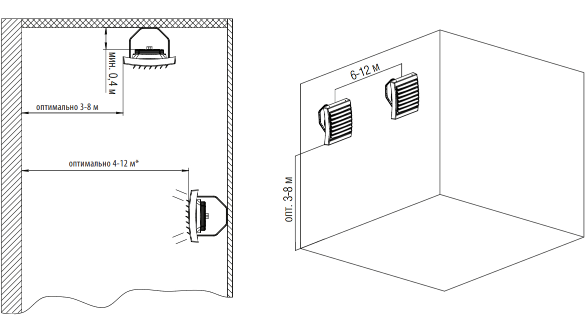 • Различные варианты установки — горизонтально, вертикально, на шпильках, на тросах.