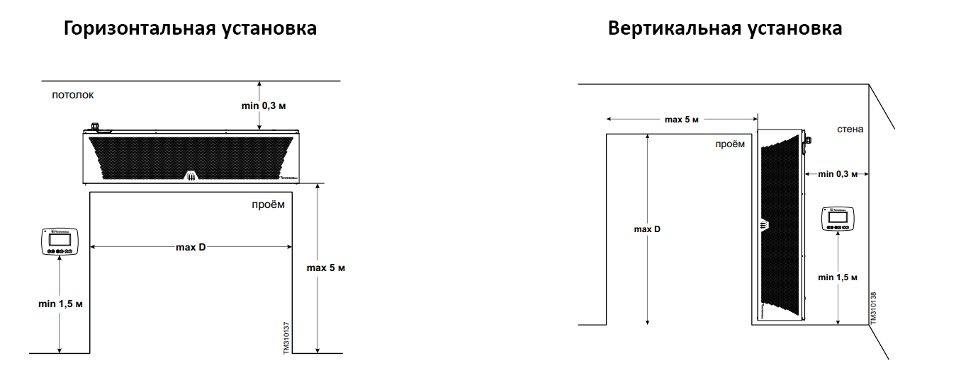 - Возможность управления группой завес с одного пульта (см. паспорт изделия).