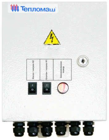| Регулирование подводимой тепловой мощности в зависимости от температуры воздуха внутри помещения | Защита теплообменников от низких температур | Регулирование теплоотдачи завесы для поддержания заданной температуры в помещении | Включает завесу при открывании ворот | Блок подключения |