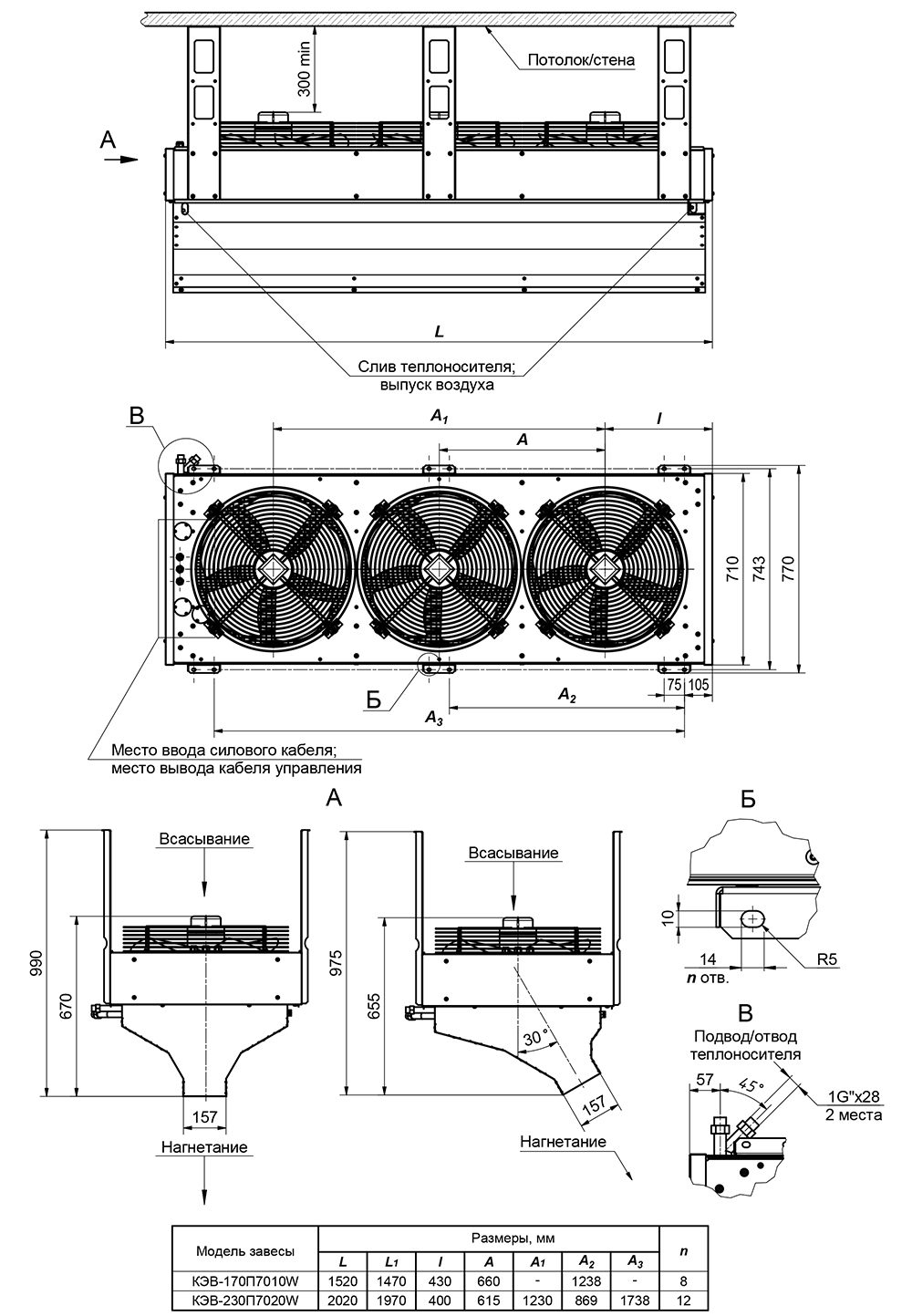 Габаритные и установочные размеры: