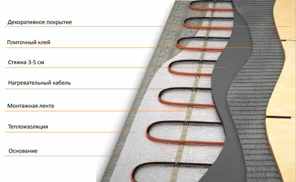 Электрическая система «теплый пол» на основе двухжильного греющего кабеля с увеличенным сечением жил. Покрыт сверхнадежной усиленной оболочкой предотвращающей повреждения на изломы. Экранирован алюминиевой фольгой, препятствующий электромагнитному излучению. Служит в качестве дополнительного, основного обогрева в холодных помещениях. Монтируется в стяжку под любое напольное покрытие. Применяется в бытовых, коммерческих и промышленных объектах.