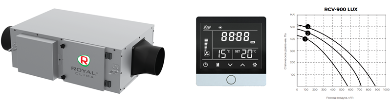 Приточная вентиляционная установка Royal Clima RCV-900 LUX + EH-3000